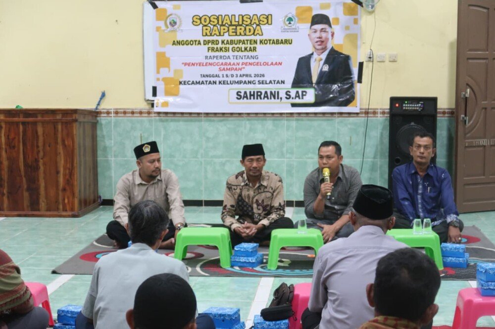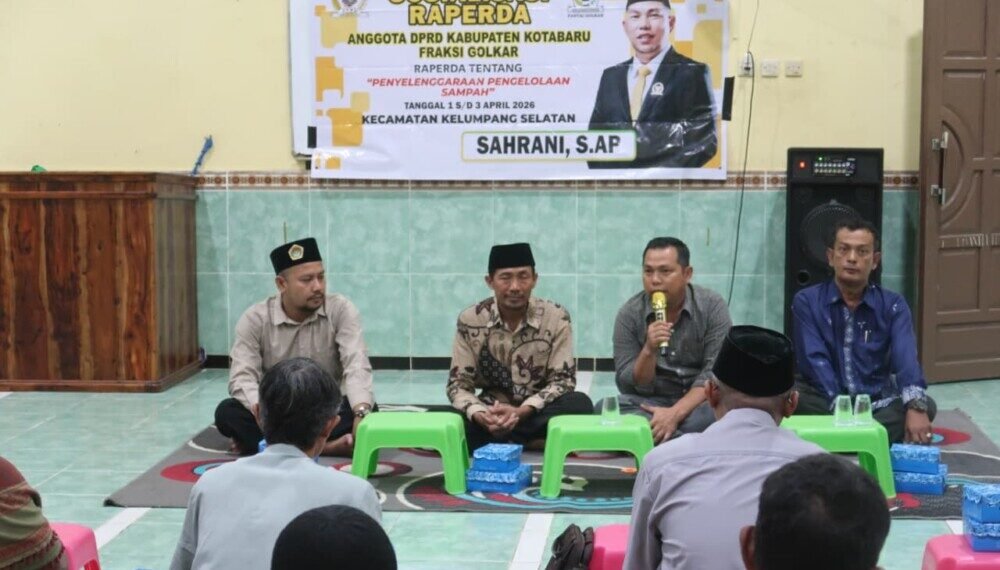 Kotabaru (02/04) — Anggota Dewan Perwakilan Rakyat Daerah (DPRD) dari Fraksi Golongan Karya (Golkar), Sahrani, S.A.P., menggandeng warga Lembaga Dakwah Islam Indonesia (LDII) Desa Tarjun dalam kegiatan sosialisasi Rancangan Peraturan Daerah (Raperda) tentang Penyelenggaraan Pengelolaan Sampah pada Rabu (01/04) di Masjid At-Taqwa, Jalan Syarif Alwi, RT 03 RW 02, Desa Tarjun, Kecamatan Kelumpang Hilir, Kabupaten Kotabaru.