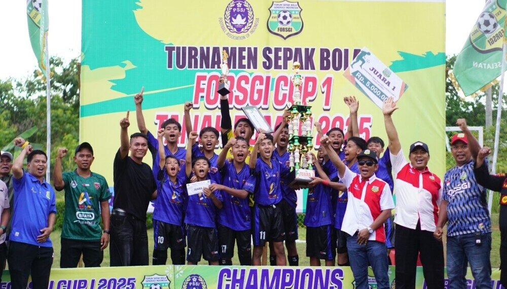 Tanah Bumbu (29/10), Forum Sepak Bola Generasi Indonesia (FORSGI) Kabupaten Tanah Bumbu menggelar turnamen FORSGI CUP I 2025 usia 15 tahun dilapangan sepak bola FORSGI Sungai Hanau, Desa Gunung Besar, Kecamatan Simpang Empat pada sabtu (25/10)