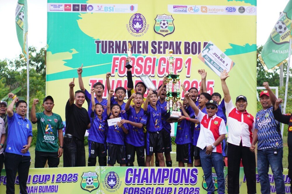 Tanah Bumbu (29/10), Forum Sepak Bola Generasi Indonesia (FORSGI) Kabupaten Tanah Bumbu menggelar turnamen FORSGI CUP I 2025 usia 15 tahun dilapangan sepak bola FORSGI Sungai Hanau, Desa Gunung Besar, Kecamatan Simpang Empat pada sabtu (25/10)