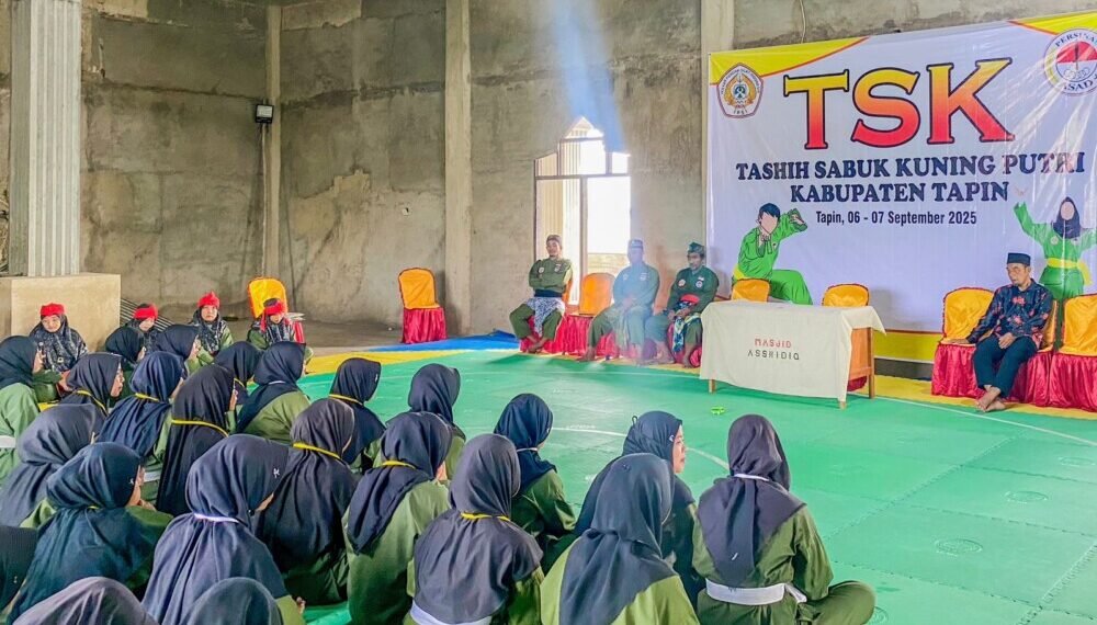Tapin (8/9) – Suasana khidmat dan penuh semangat menyelimuti Gedung Olahraga Persinas Asad Kabupaten Tapin pada Minggu (06/09). Ratusan pesilat putri dari berbagai tingkatan memadati aula untuk mengikuti Kegiatan Tashih Sabuk Kuning (TSK), sebuah ajang penting dalam perjalanan mereka di Persinas Asad.